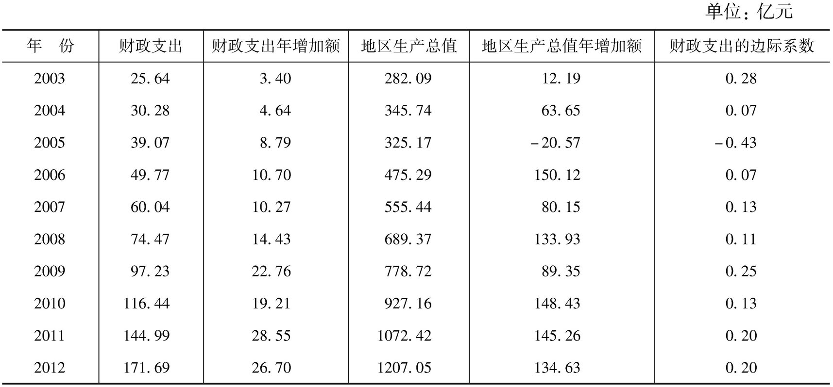 图片名称: 开封市2003~2012年财政支出的边际系数
