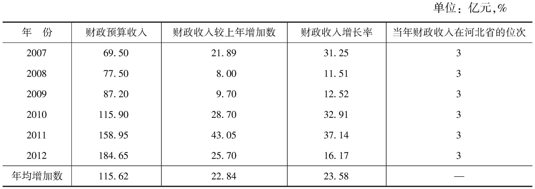 图片名称: 邯郸市2007~2012年公共预算收入情况
