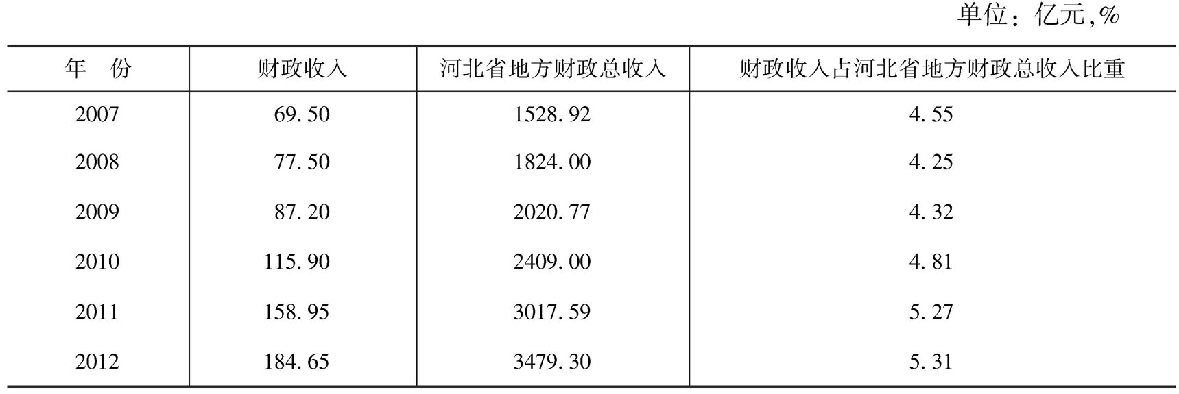图片名称: 邯郸市2007~2012年财政收入占河北省财政收入的比重情况