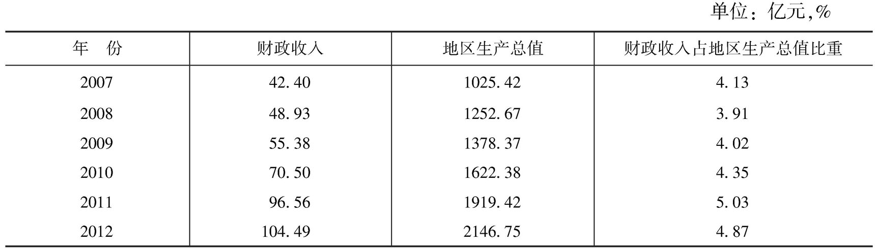 从表29-1来看,2007~2012年,聊城市财政收入逐年增加,2007年达到42.40亿元,2010年突破70亿元,2012年达到104.49亿