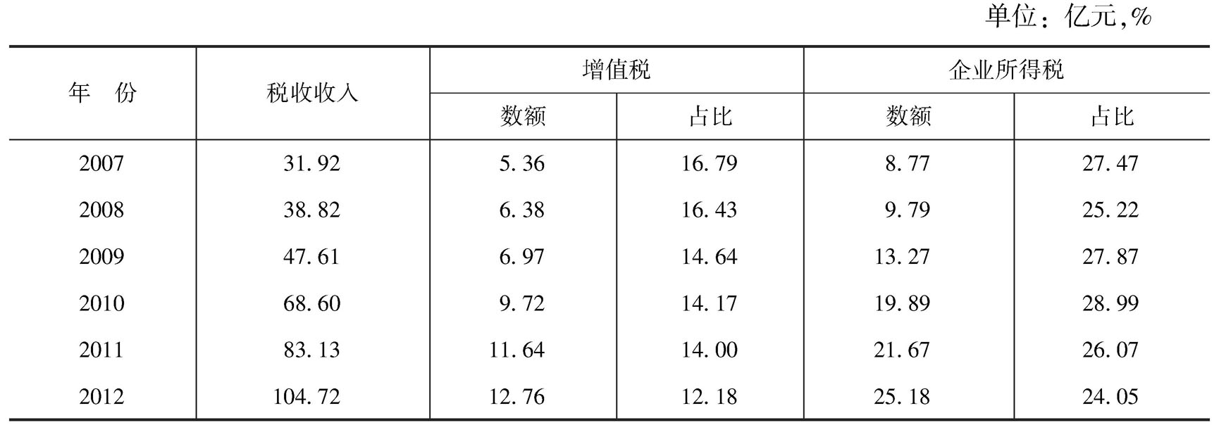 从表30-1可以看出,菏泽市财政收入规模的绝对数稳步增加,其中2007年突破40亿元,2009年突破60亿元,2010年突破80亿元,2012年突破140亿元;2007~2012年财政收入较上年增加数平均为19.20亿元,年均增加比重为29.58%;当年财政收入增长率位居全省前列。2007~2012年,菏泽市财政收入在山东省的