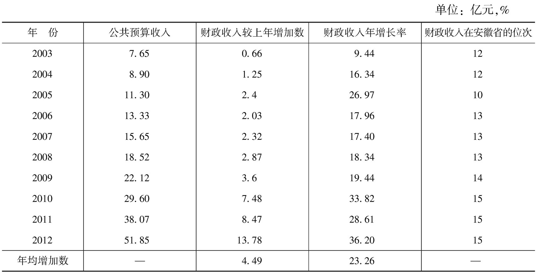 图片名称: 淮北市2003~2012年公共预算收入情况
