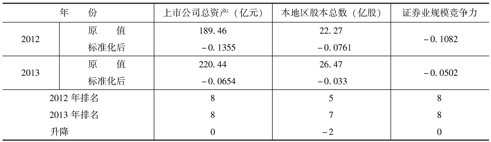 图片名称: 许昌市2012~2013年证券业规模竞争力及其四级指标