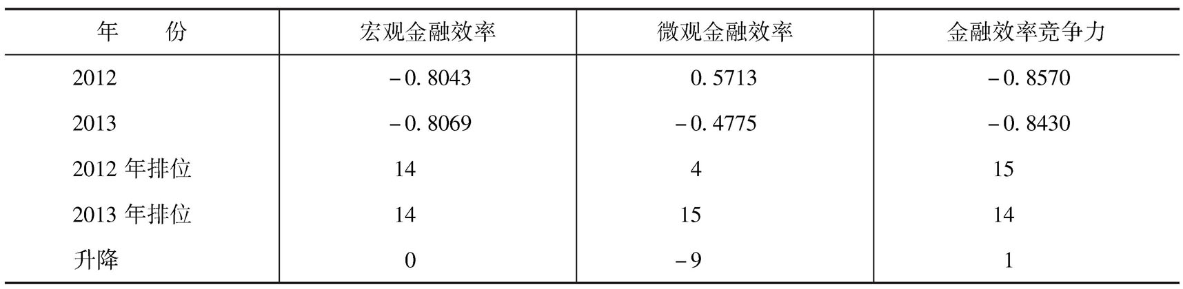 图片名称: 许昌市2012~2013年金融效率竞争力指标及其三级指标