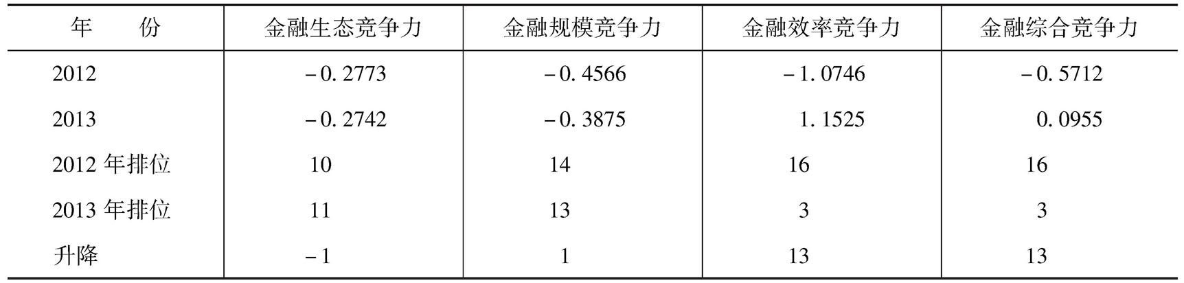 图片名称: 漯河市2012~2013年金融综合竞争力指标及其二级指标