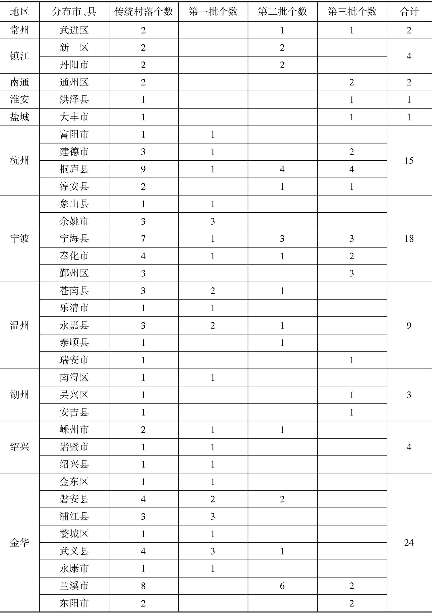 根据住建部、文化部、国家文物局和财政部四部门公布的第一批、二批、三批中国传统村落名录,浙江省有传统村落176个,江苏省26个,两省一共202个。浙江省传统村落主要集中在