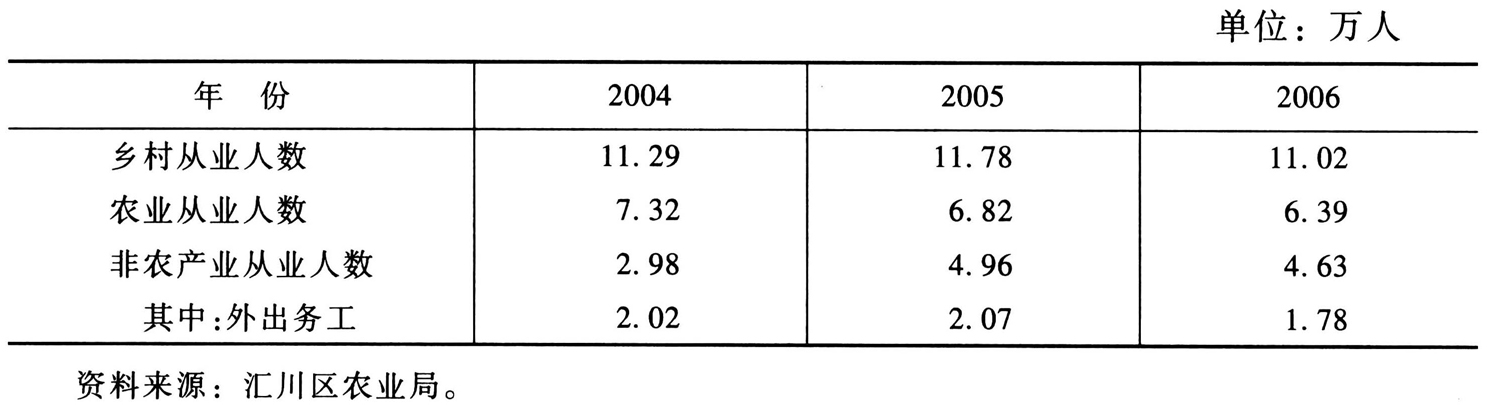 图片名称: 2004~2005年汇川区农村劳动力就业情况