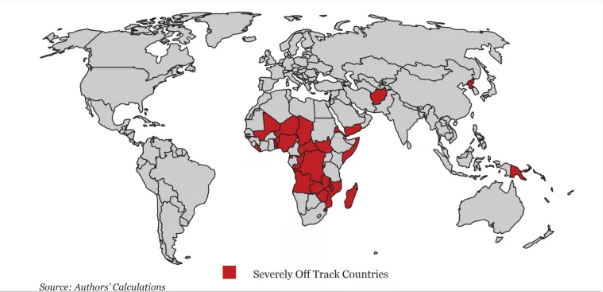 2.作者梳理2030年较难实现消除绝对贫困国家,并将这31个国家定义为严重脱轨国家,预计这些国家在2030年贫困人口仍占该国总人口的20%,31个国家的贫困人口为全球贫困人口的80%。因此,这些国家脱贫对于实现2030年可持续发展计划有重要作用。