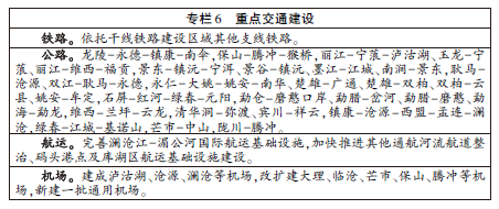 区域内交通网络建设。加强与国家公路、铁路网络连接,加快省道、专支线铁路及主通道联络线规划与建设。构建保山、丽江、临沧、芒市等区域性交通运输枢纽。开展通航河流航道建设,提升航运能力。加快民用机场和通用机场建设。提高口岸通道、县际及通县公路的技术等级和网络化程度,实现县到乡镇通沥青( 水泥) 公路。继续推进农村公路通达工程、通畅工程和农村客运网络化工程。形成布局科学、干支结合、结构合理的区域综合交通运输网络。