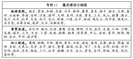 小城镇建设。科学规划小城镇布局。重点建设一批旅游度假、商贸流通、加工制造等特色小城镇,支持一批交通区位优、产业基础好、发展潜力大的城镇发展成为中心镇。加大小城镇道路、电力、供水、供气、污水和垃圾处理等基础设施建设,加强教育、卫生等公共服务设施建设,完善城镇服务功能。充分发挥小城镇人口集聚能力,引导农村人口向小城镇适度集中。